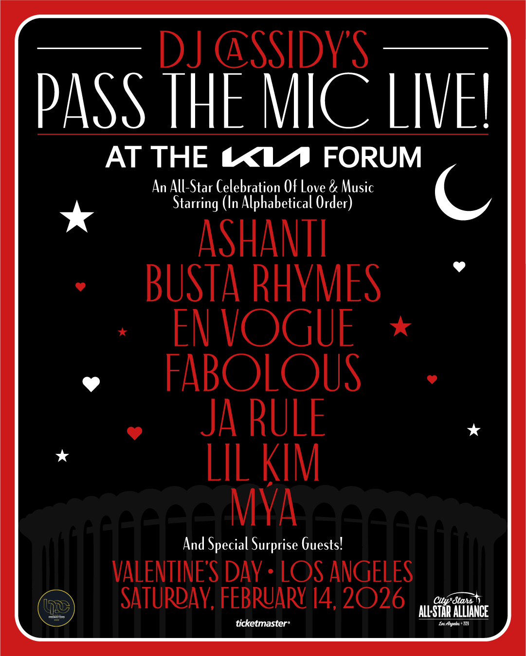 Now, DJ Cassidy has taken the show on the road with his highly anticipated “DJ Cassidy’s Pass The Mic Live!” Over the last year, the “Pass The Mic Live! Tour” has sold out arenas nationwide, in addition to a historic summer 2023 event at New York City’s Radio City Music Hall in celebration of Hip Hop’s 50th birthday.